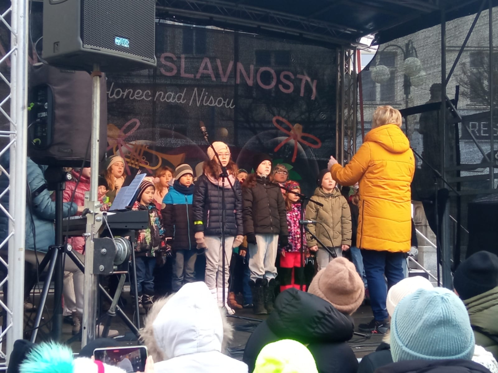 Školní sbor pilně nacvičoval už od října, aby mohl vystupovat nejen na akcích ve škole, ale také reprezentovat naši školu na jabloneckých vánočních trzích. Dne 18. 12. jej přišlo na náměstí podpořit mnoho spolužáků, a tak děkujeme všem účinkujícím za krásný společný zážitek.