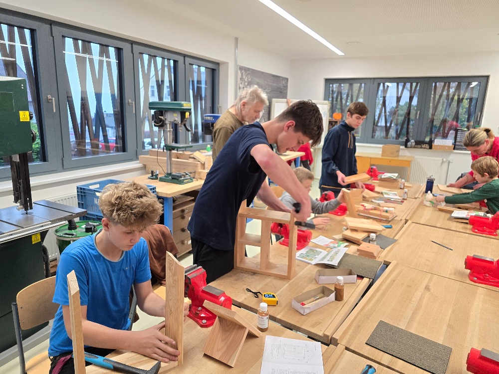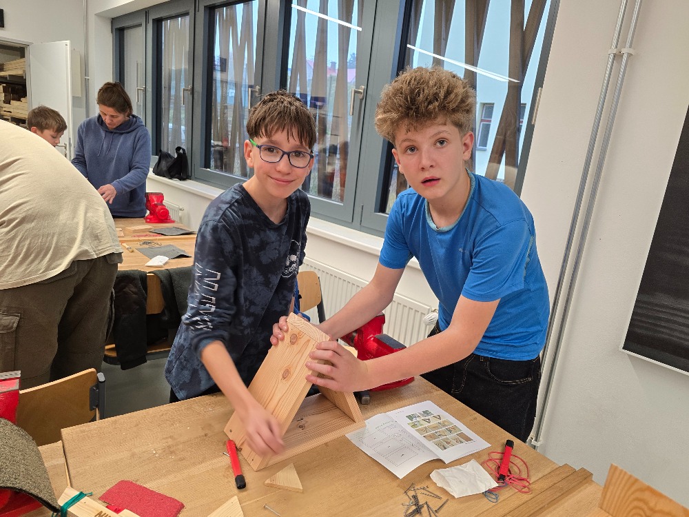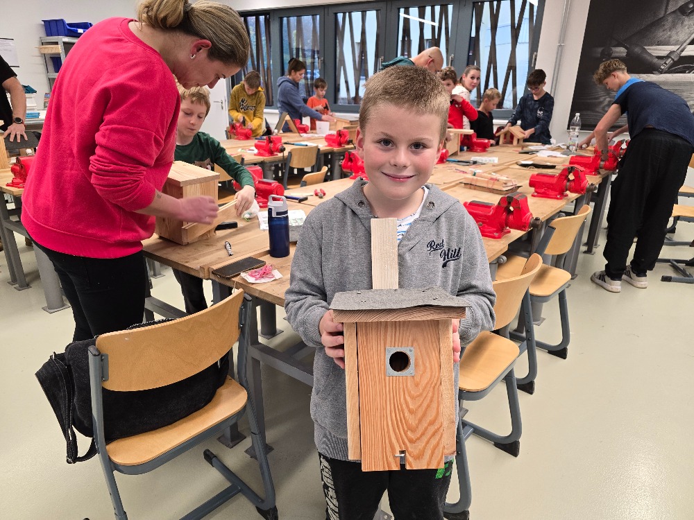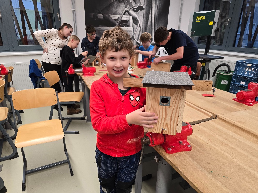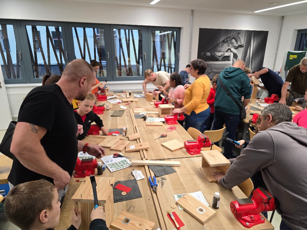 Ve školní dílně se 22. října 2025 opět setkaly tři generace a společně sestavovaly budky, krmítka a hmyzí hotely, které najdou uplatnění u zájemců doma na zahradě. Bylo hezké pozorovat, jak se navzájem děti a dospělí doplňují při společné práci. Nejzkušenější účastníci akce byli žáci z druhého stupně. Ti pomohli všem, kdo to potřeboval a jako zkušení dílenští odborníci také vyrobili sestavy budek, krmítek a hmyzích hotelů pro všechny tři školní zahrady.