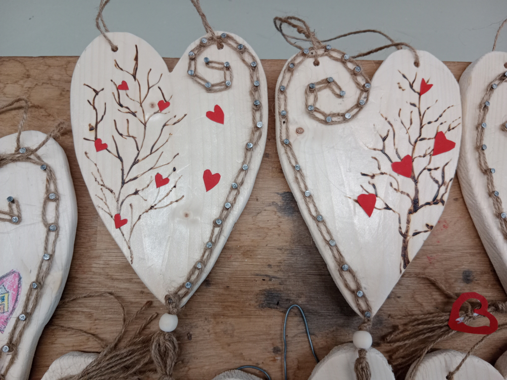 V tomto cyklu projektových dnů jsme se zaměřili na výrobu dárků k blížícímu se svátku sv. Valentýna. Žáci 3. A a 3. B vyráběli malá kuchyňská prkénka (podložky pod horké nádobí) dozdobená vypalovací technikou. Žáci 4. A a 4. B si vytvořili dekoraci skládanou ze srdíček, při které použili již pro ně známé techniky. Jako poslední v tomto cyklu dílny navštívili žáci 5. A a 5. B, kteří vyráběli dekoraci ve tvaru velkého srdce jako symbolu rodiny a domova.