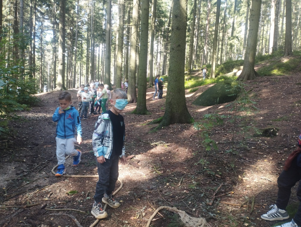 V pátek 19. 9. 2025 si děti ze školní družiny na Vrkoslavicích vyzkoušely, jaké to je být nevidomý. V lese musely plnit různé úkoly jako chůze po laně, podle navigace kamaráda projít slalom, poznat malou a velkou kuličku hmatem, projít mezi stromy po provázku a to vše se zakrytýma očima. Ještě bylo nutno vyluštit tajenku. Děti musely ve dvojicích hledat podle úkolů na kartičkách správná písmenka, která tvořila tajenku. Krásná byla spolupráce druháků s prvňáky ve dvojici. Dětem se odpoledne se Světluškou moc líbilo.