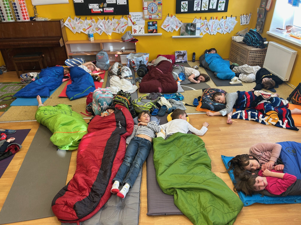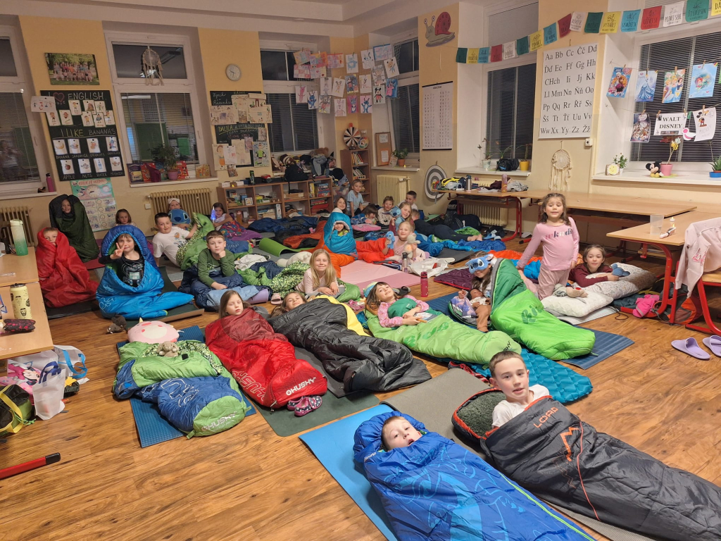 Děti si společně četly, plnily tematické úkoly a nechyběla ani noční detektivní hra s detektivem Vroubkem ve 3.A a 5.A nebo návštěva Macha a Šebestové, kteří zůstali přes noc ve škole s dětmi ze 3.B. Atmosféra byla kouzelná – škola se po setmění změnila v místo plné fantazie a tajemství. Přespání ve třídách pak bylo pro mnohé velkým zážitkem.