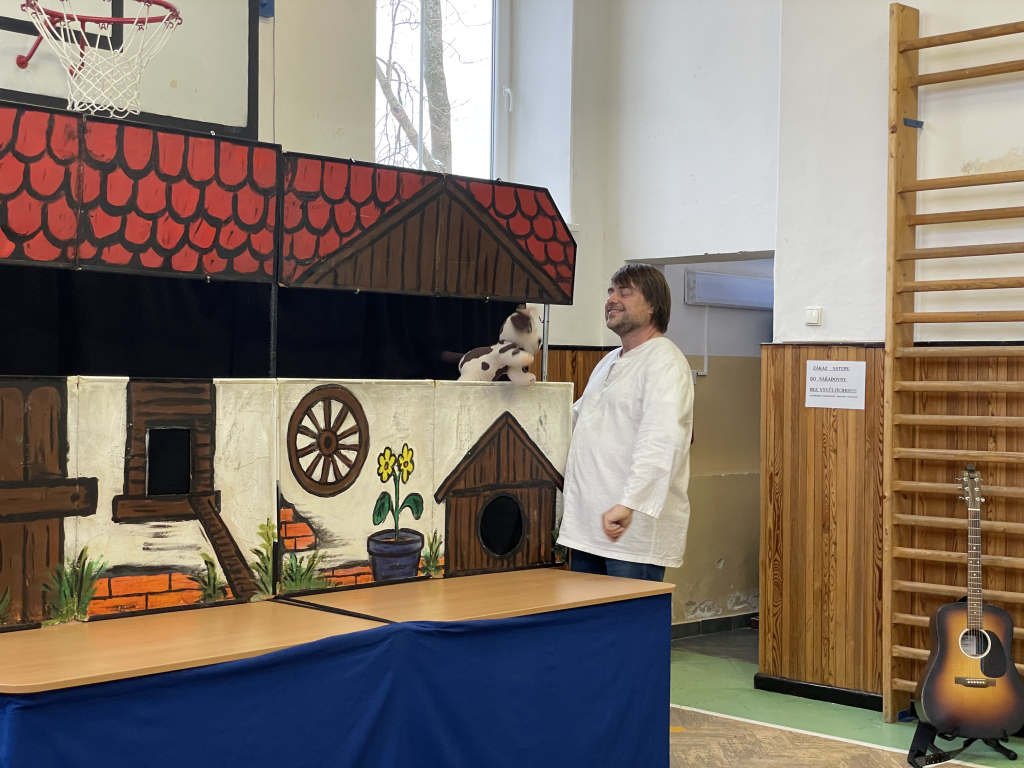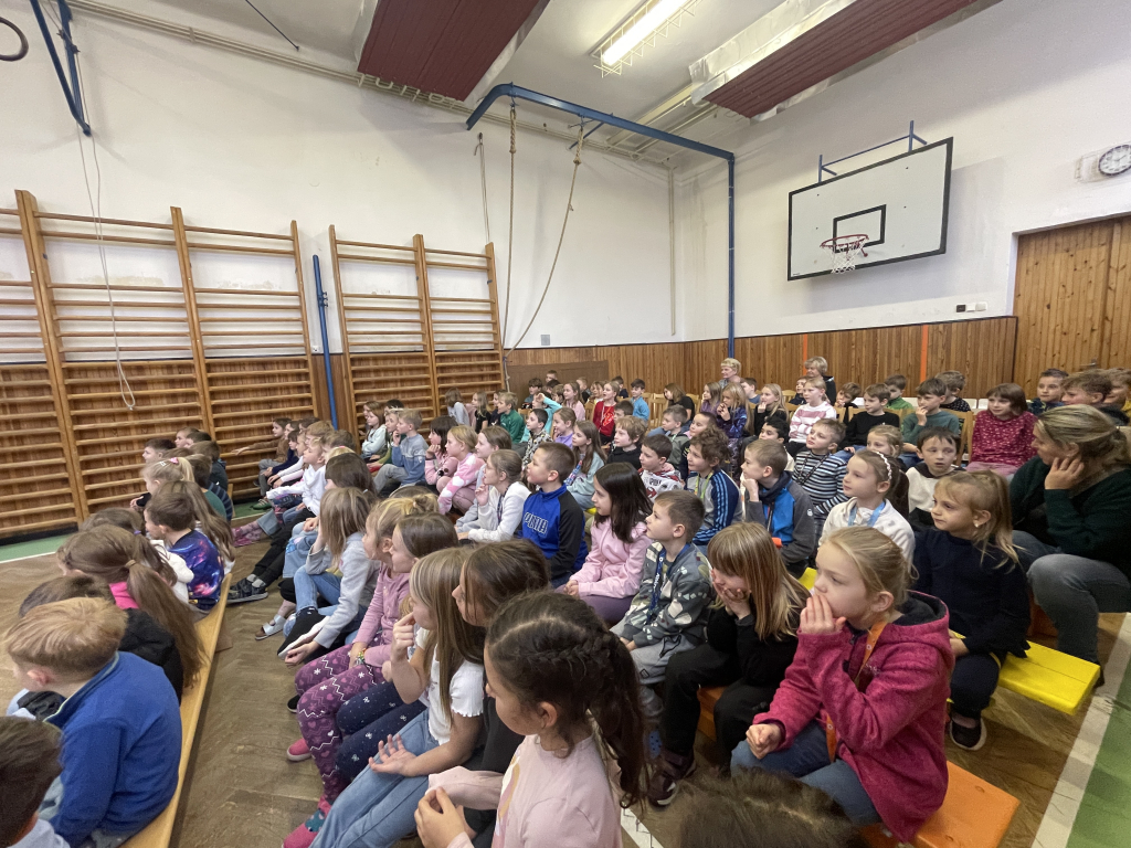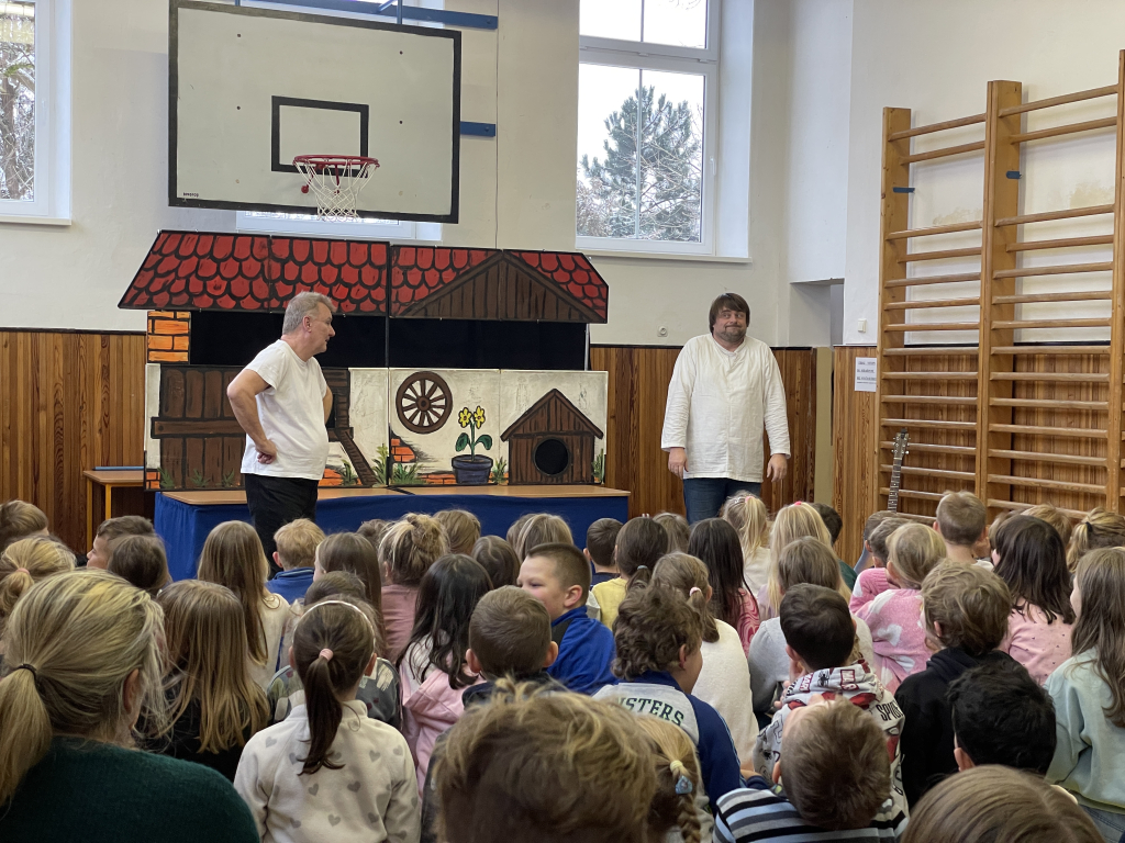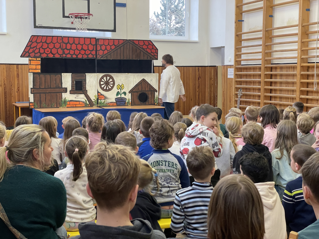 V pondělí 24. 11. 2025 se sešly všechny družiny v tělocvičně na Vrkoslavicích. K dětem totiž zavítalo Divadélko pro školy z Hradce Králové. Pro děti byla připravena pohádka Pohádky na statku. Bylo to veselé představení plné smíchu i písniček. Děti se smály celé představení a moc se jim pohádka líbila.