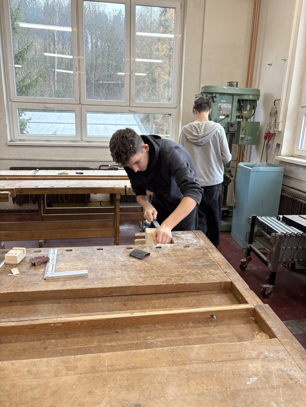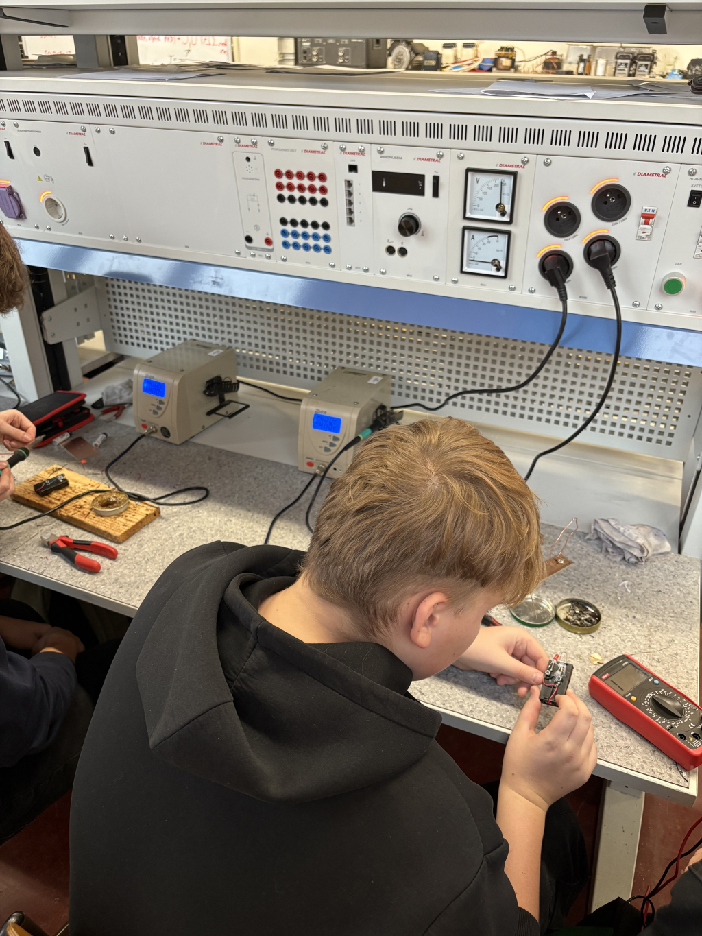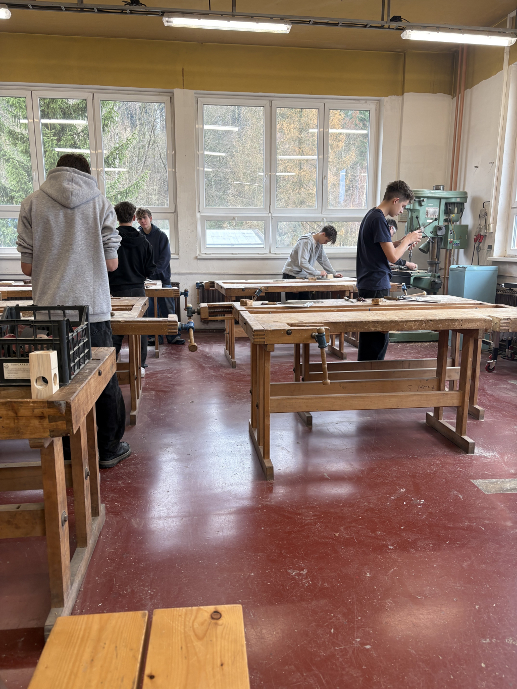 Po přestavení školy byli žáci rozděleni do dvou skupin. Jedna část zamířila do elektrodílny, kde si měli možnost prakticky vyzkoušet pájení. Druhá skupina navštívila truhlářskou dílnu. Oběma skupinkám se věnoval příslušný pan mistr spolu se studenty zdejší školy, kteří jim byli nápomocni během tvoření. Vytvořili opravdu moc pěkné výrobky.