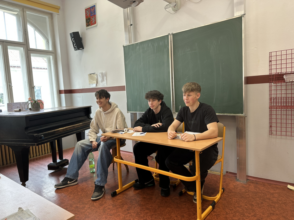 Naše kolegyně vyučující češtinu přiblížily původní tvorbu Karla Čapka v rámci svých hodin. Díky tomu se žáci během dialogů na jevišti mohli mnohem lépe orientovat v ději i ve vztazích jednotlivých postav hry. Samotná hra publikum zaujala, sledovali jsme anglické dialogy, všímali si hereckých výkonů, řešení kulis i kostýmů.