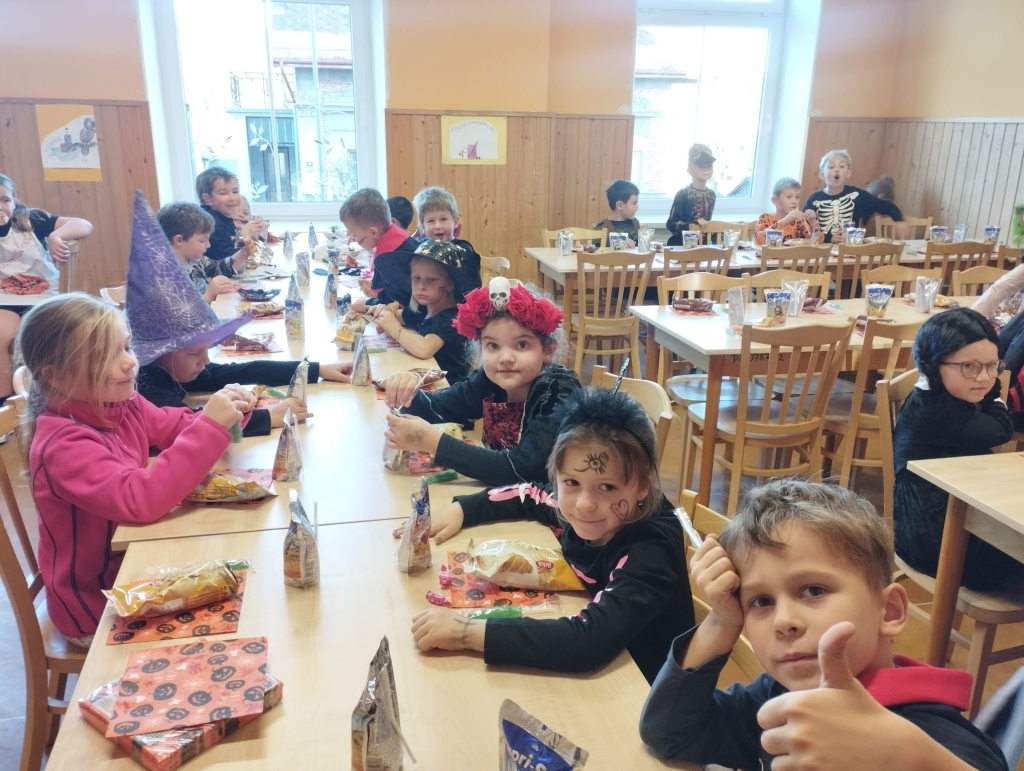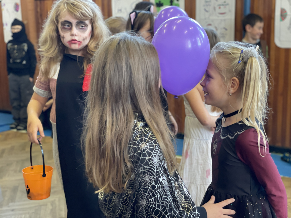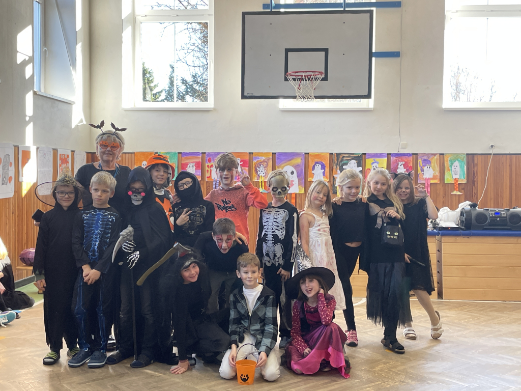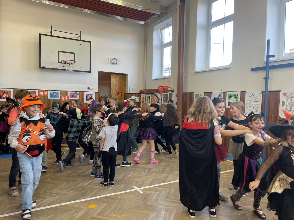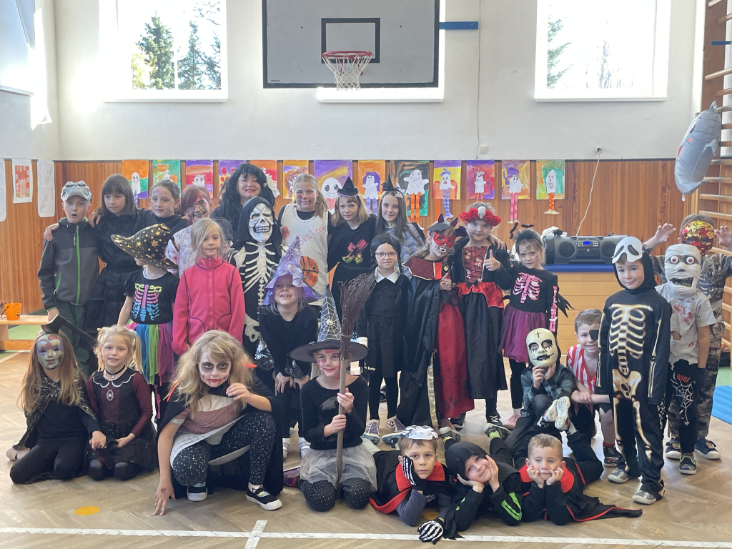 V pátek 7. 11. 2025 se celá družina na Vrkoslavicích proměnila ve strašidelnou družinu. Děti se těšily na halloweenskou zábavu. Připravily výzdobu do tělocvičny a po celé škole. A v pátek už na ně čekalo odpoledne plné tance, zábavy a soutěží. Nechyběla ukázka strašidelných masek. Součástí odpoledne byla i malá svačinka v jídelně. Společné veselí nebralo konce. Všem se zábava moc líbila a už se společně těšíme na další zábavné odpoledne.