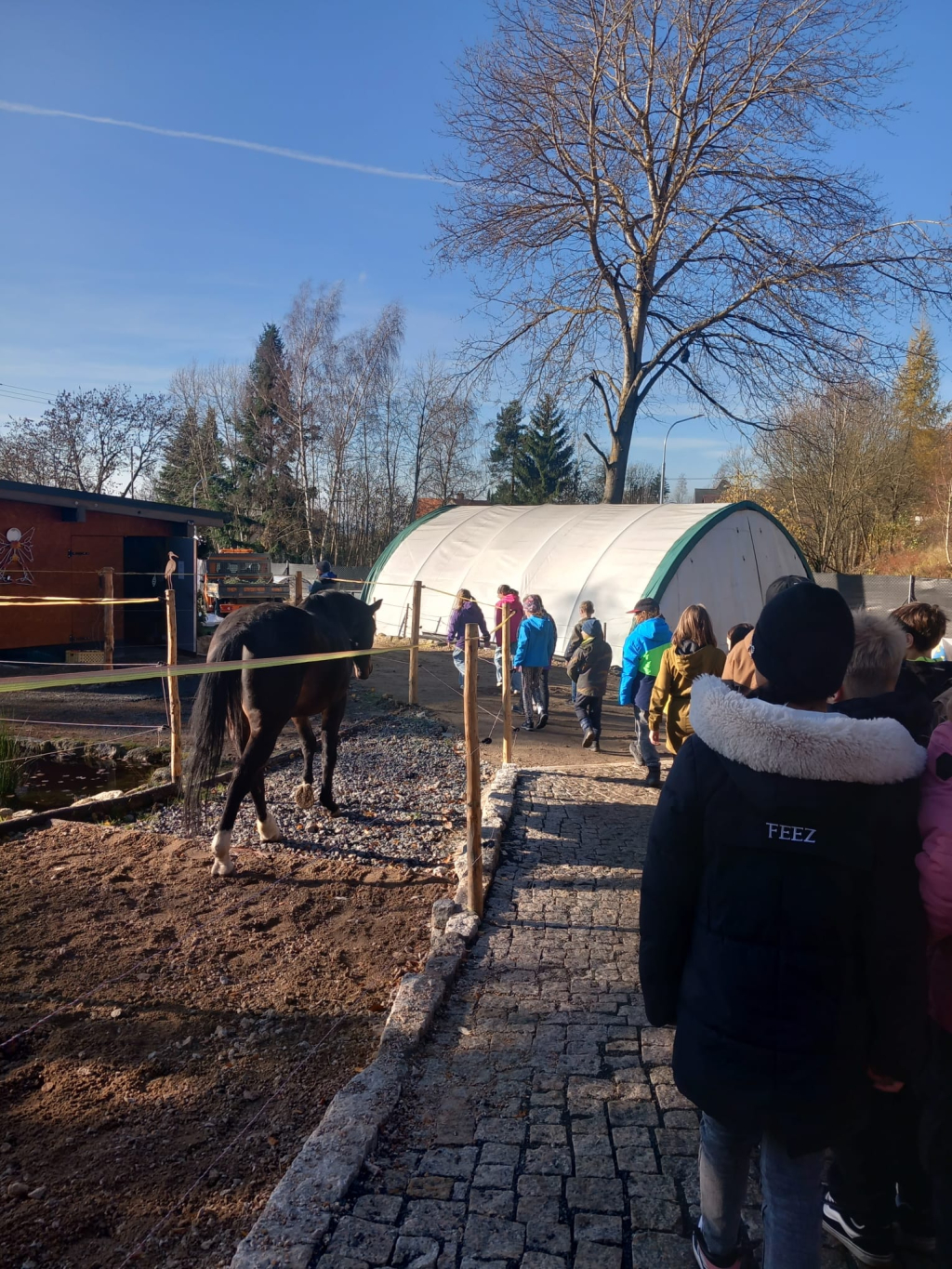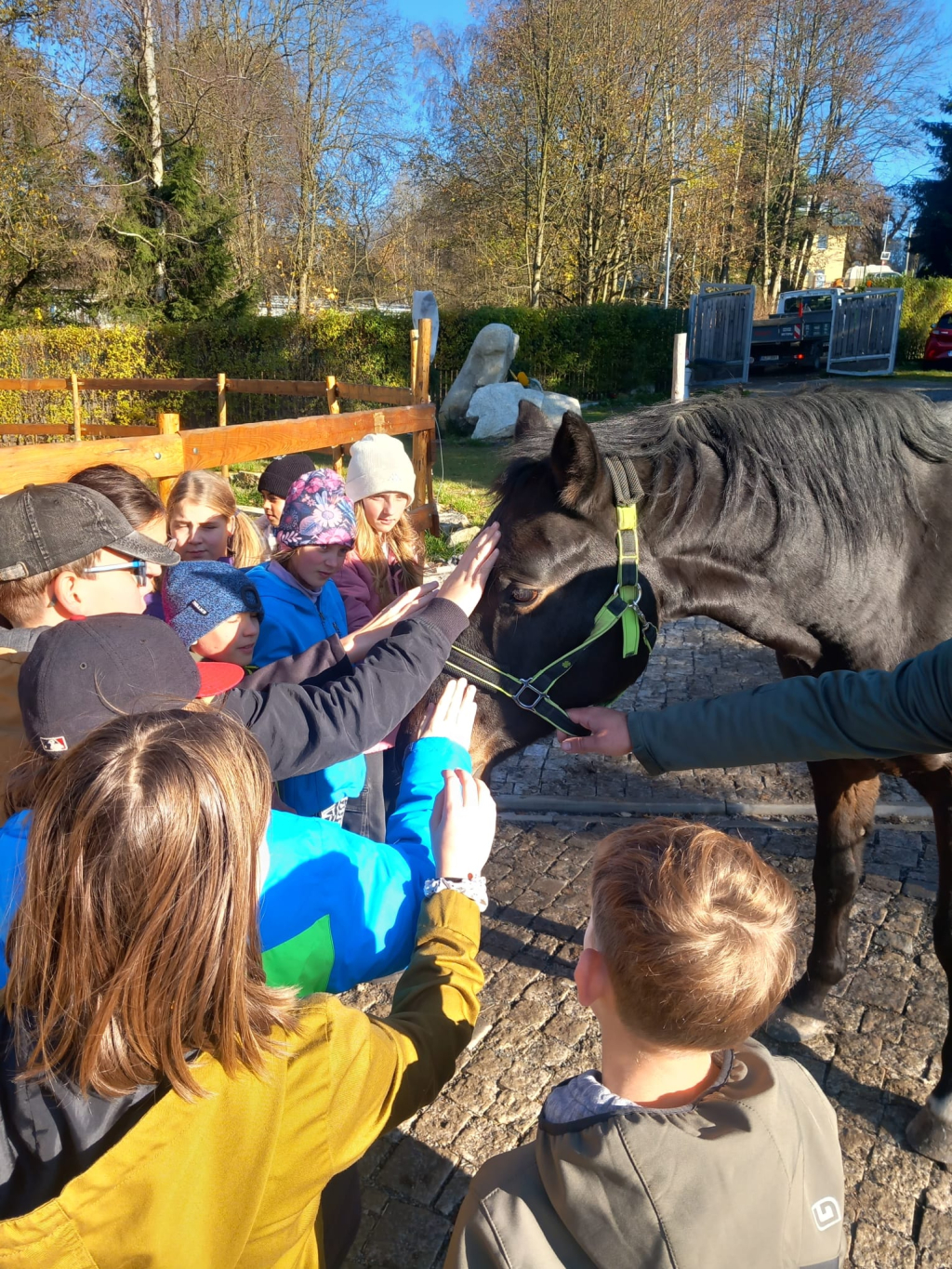 Svatý Martin k nám sice nepřijel na bílém koni, ale páťáci vyrazili minulý pátek do Borůvkové ulice v Kokoníně, kde prožili krásné chvíle se třemi nádhernými koňmi. Nebyli bílí, zato mají svoje mládí a minulost poznamenanou. Z vážných problémů je dostal pan Ševčík, který nám spolu s jeho maminkou koně představil. Neskutečný zážitek to byl nejen pro děti, ale i my dospělí jsme byli unešení. Děti by tam nejraději strávily celý den. Vyzkoušely si hřebelcování, krmení, samozřejmě pohlazení. Na všechny jejich zvídavé otázky jim bylo odpovězeno.