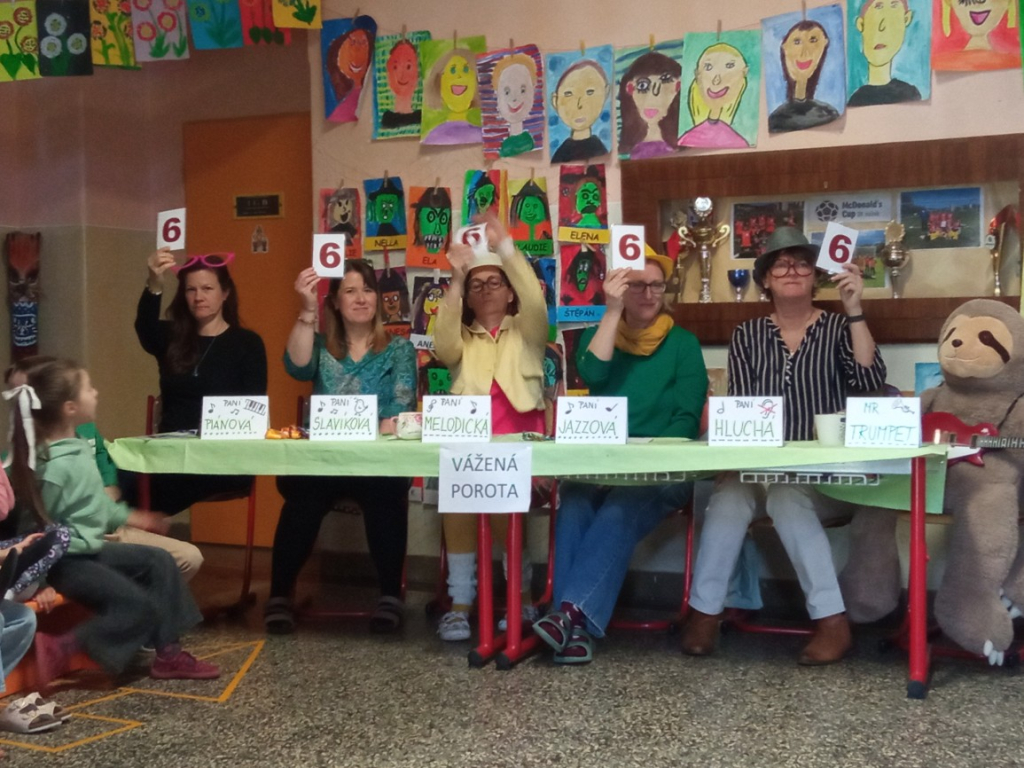 Každou třídu reprezentovalo pět odvážných zpěváků a zpěvaček, kteří předvedli své pěvecké dovednosti před publikem i „váženou“ porotou složenou z paní učitelek. Porota neměla vůbec jednoduchý úkol – výkony dětí byly velmi vyrovnané a mnohdy opravdu působivé.