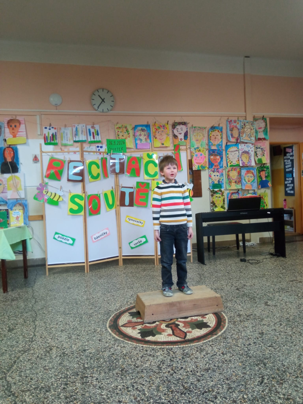 Na naší škole se ve středu 26. března 2026 uskutečnila recitační soutěž, která proběhla v příjemné a slavnostní atmosféře .